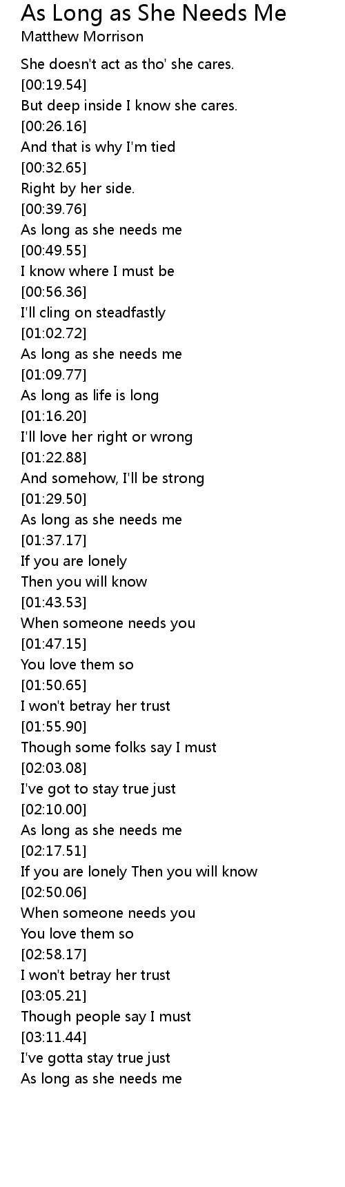 As long as she needs me |