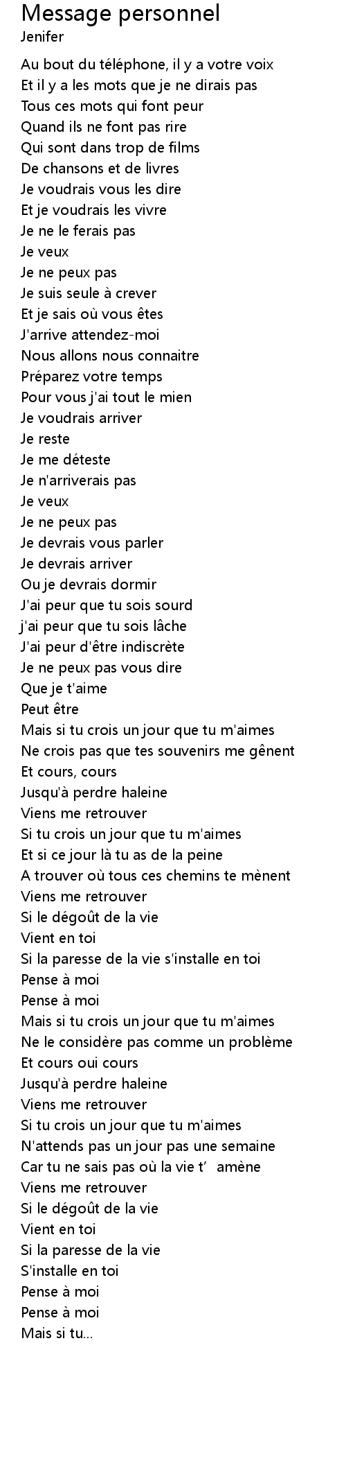 | Mais si tu crois un jour que tu m' aimes | |