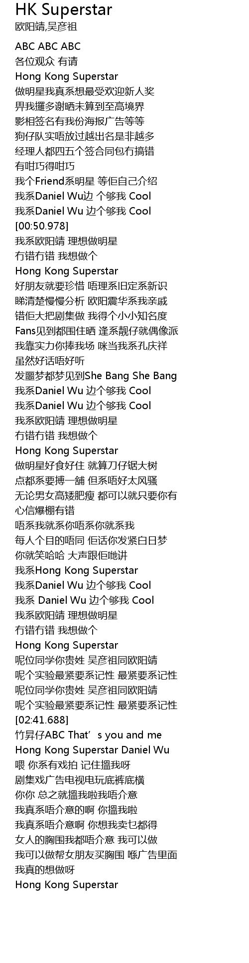 | [01:40.978] | Hong Kong Superstar |