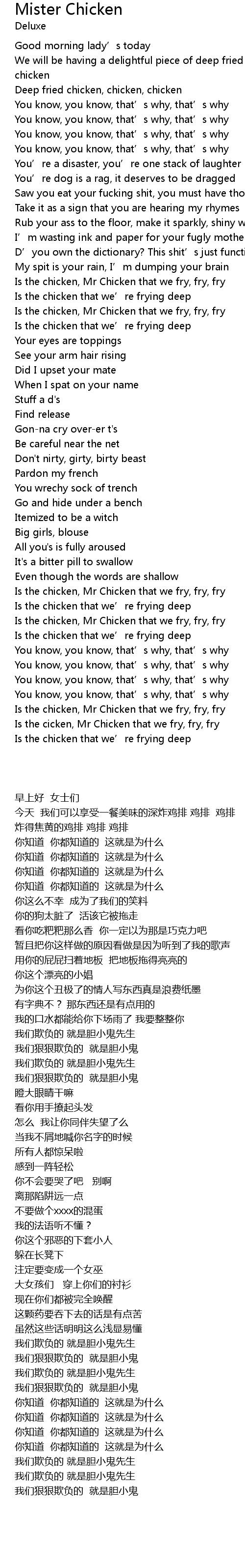 | [00:18.44] | Deep fried chicken, chicken, chicken |