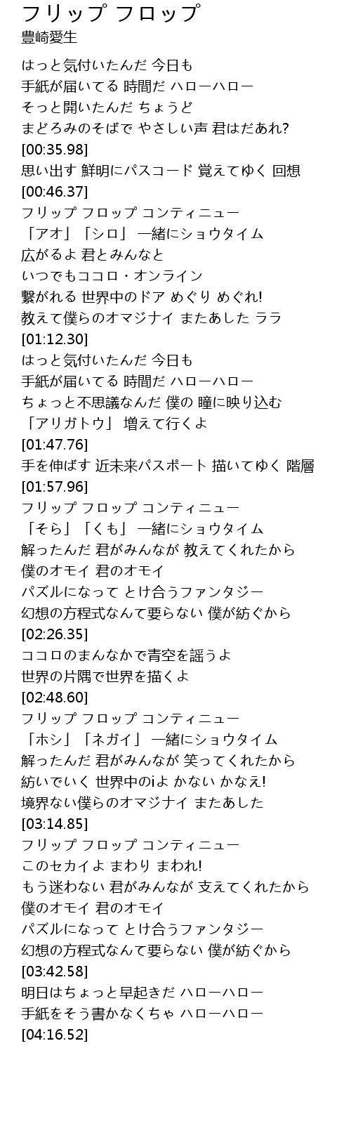 | [01:58.60] | フリップ フロップ コンティニュー |
