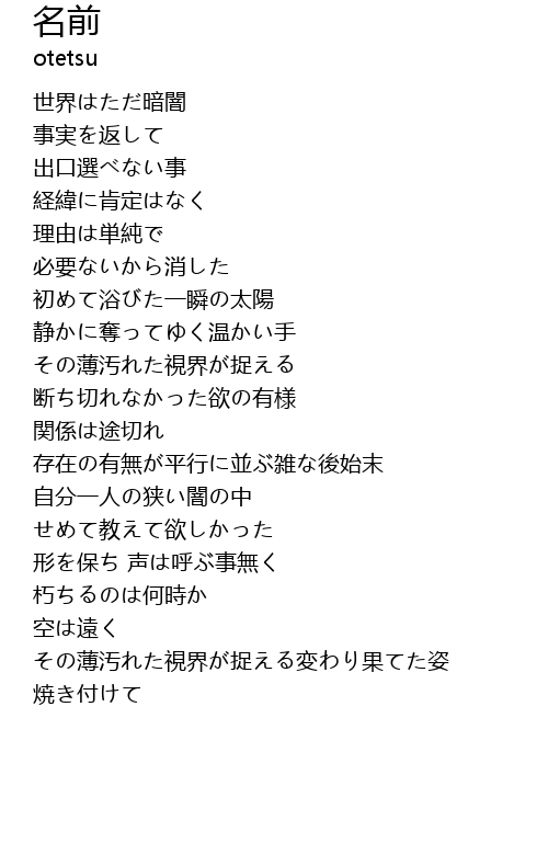 | [02:55.30] | 存在の有無が平行に並ぶ雑な後始末 |
