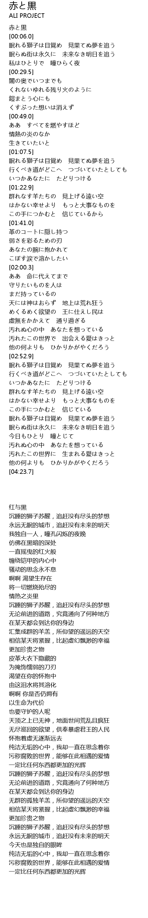 | [03:49.5] | 眠れる獅子は目覚め 見果てぬ夢を追う |