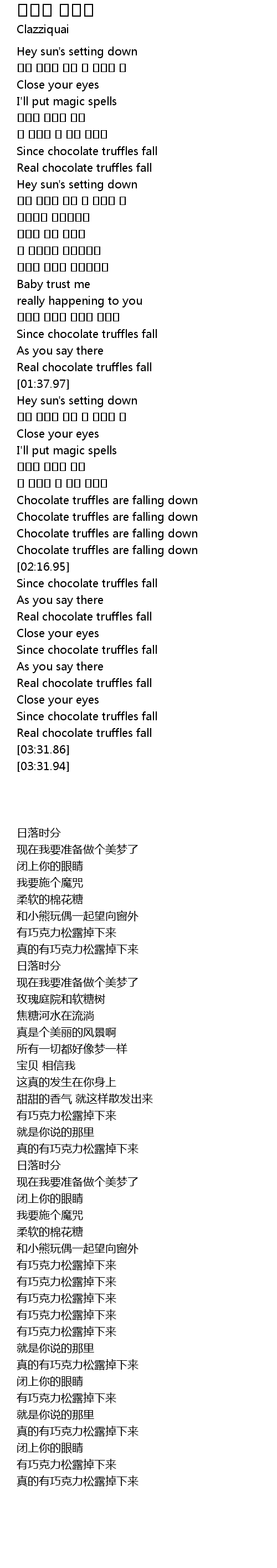 | [01:56.61] | Chocolate truffles are falling down |