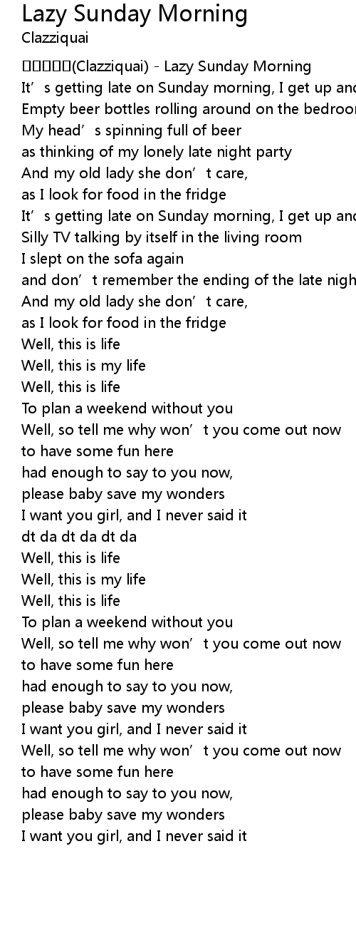 | [00:00.97] | It’s getting late on Sunday morning, I get up and see |