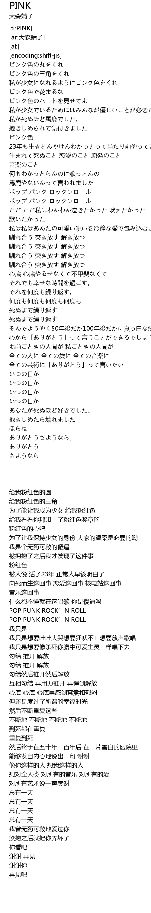 | [00:15.28] | 私が少女になれるようにピンク色をくれ |