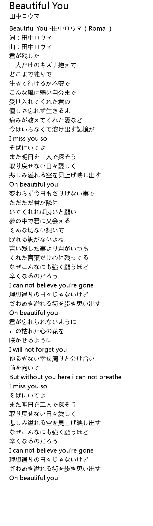 | [00:00.00] | Beautiful You -田中ロウマ(Roma ) |