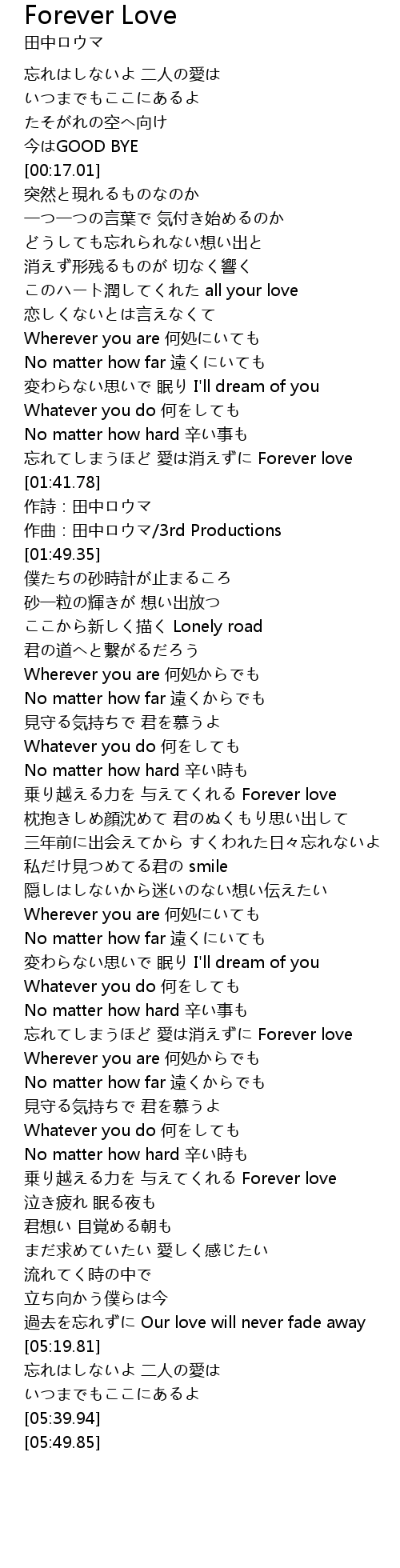 | [04:00.67] | 忘れてしまうほど 愛は消えずに Forever love |