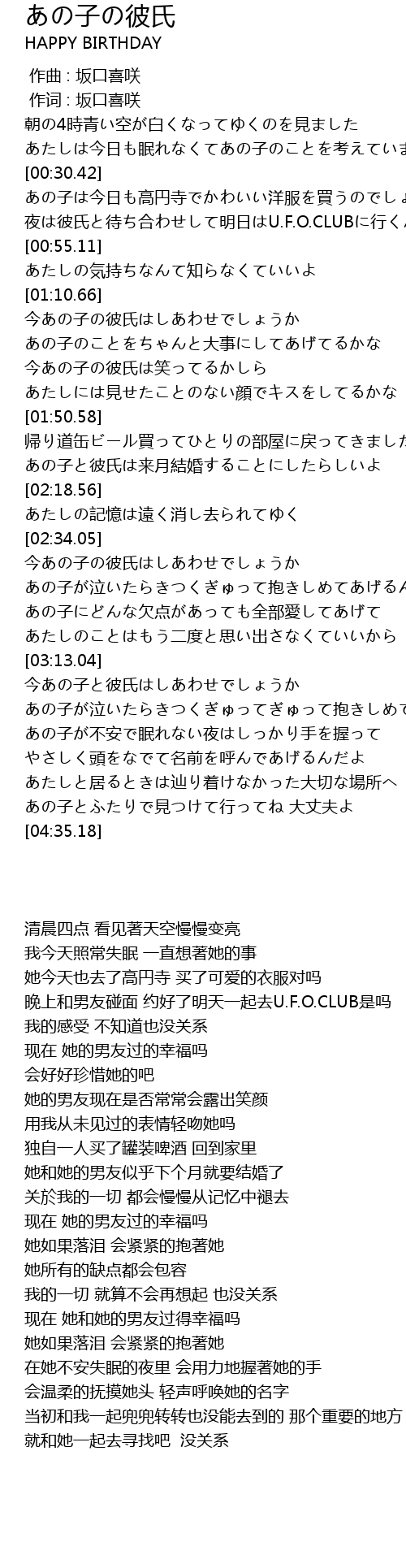 | [00:01.00] | 作词 : 坂口喜咲 |