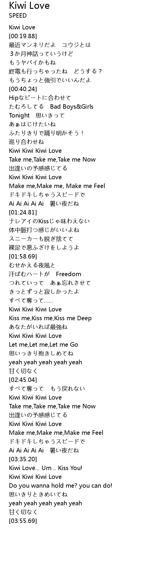 | [03:21.35] | Kiwi Kiwi Kiwi Love |