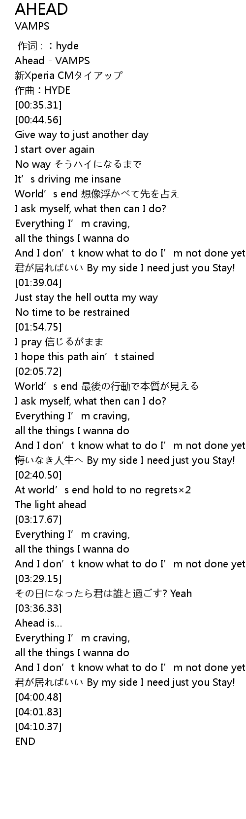 | [03:24.86] | And I don' t know what to do I' m not done yet |