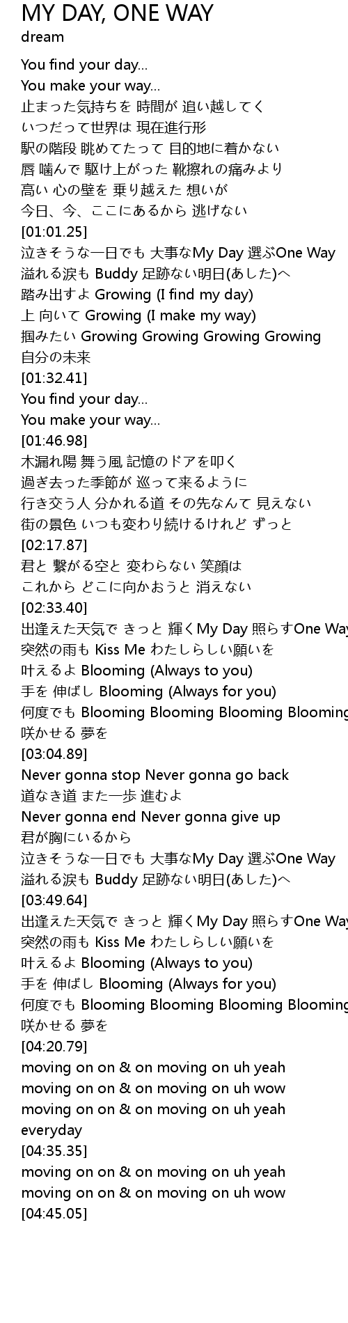 | [03:35.29] | 泣きそうな一日でも 大事なMy Day 選ぶOne Way |