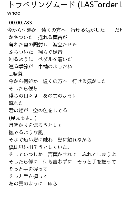 | Song | トラベリングムード (LASTorder Long distance Remix) |