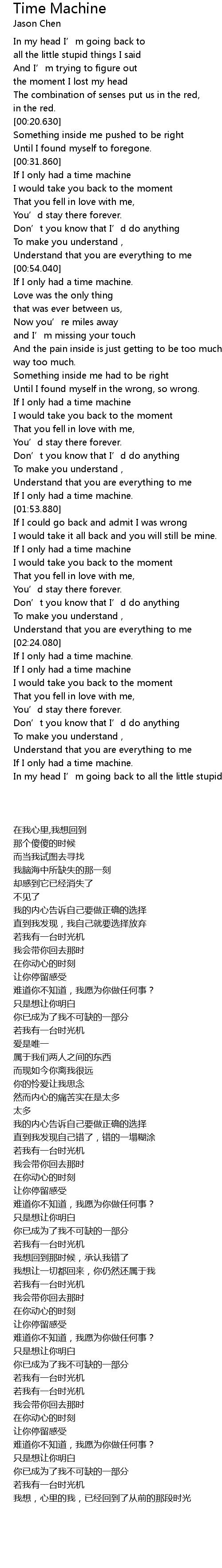 | [00:33.110] | If I only had a time machine |