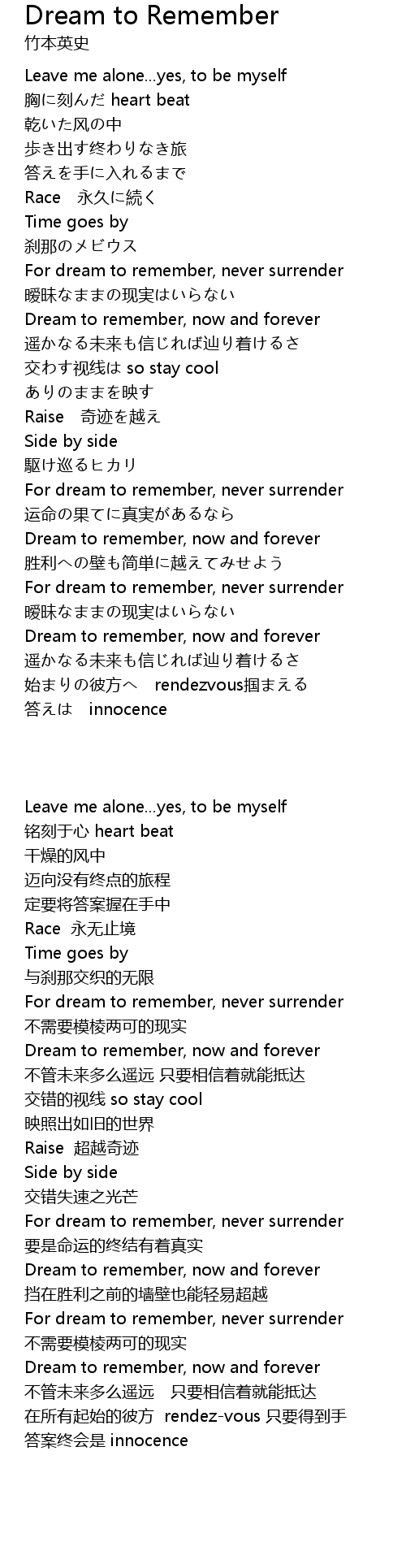 | [02:52] | For dream to remember, never surrender |
