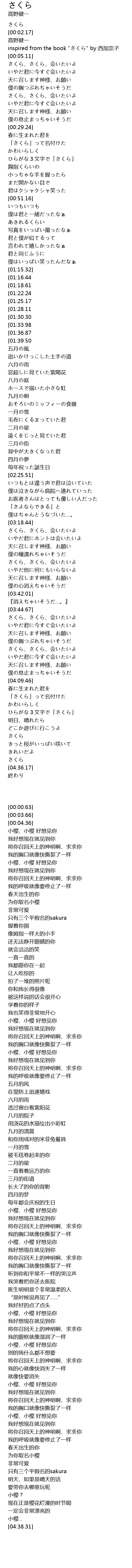 | [00:04.36] | inspired from the book "さくら" by 西加奈子 |