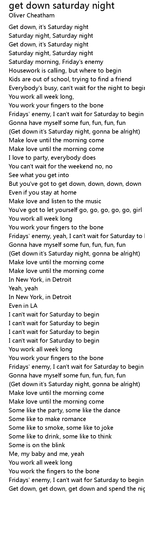 Saturday night, Saturday night |