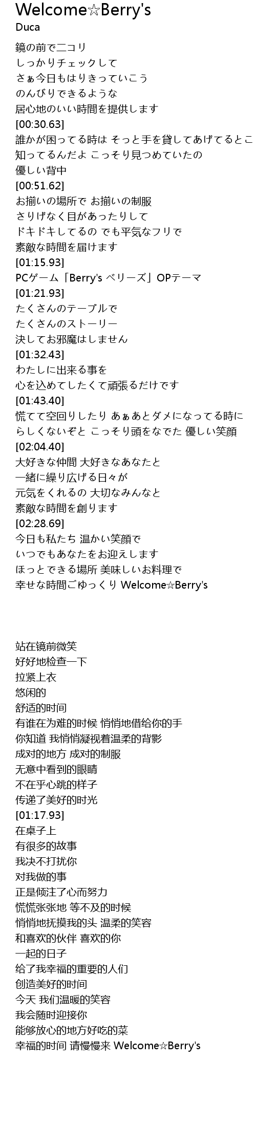 | [03:15.07] | 幸せな時間ごゆっくり Welcome☆Berry's |
