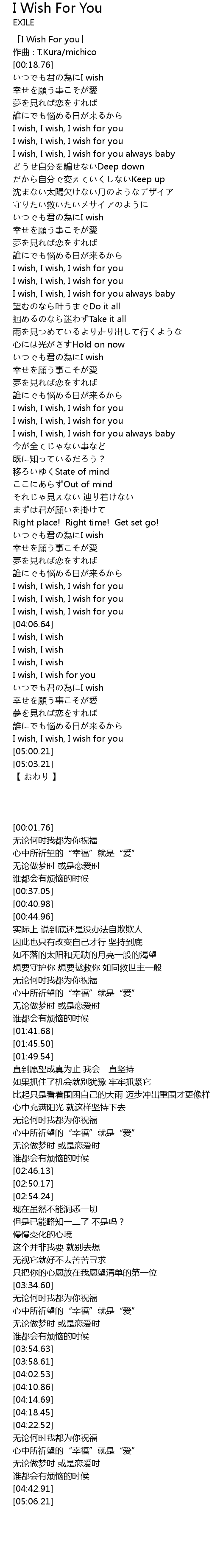 | [00:44.96] | I wish, I wish, I wish for you always baby |