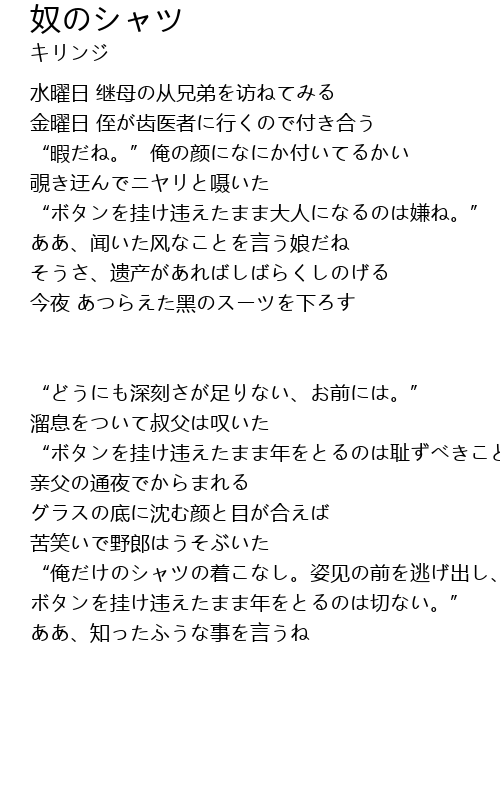 | Song | 奴のシャツ |