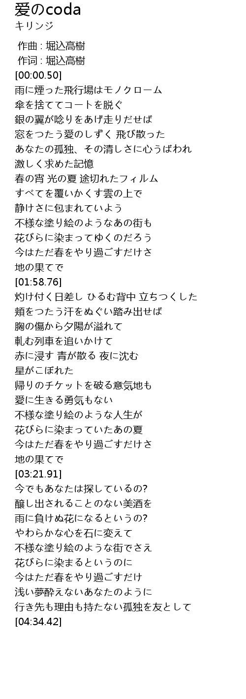 | [00:39.43] | 傘を捨ててコートを脱ぐ |