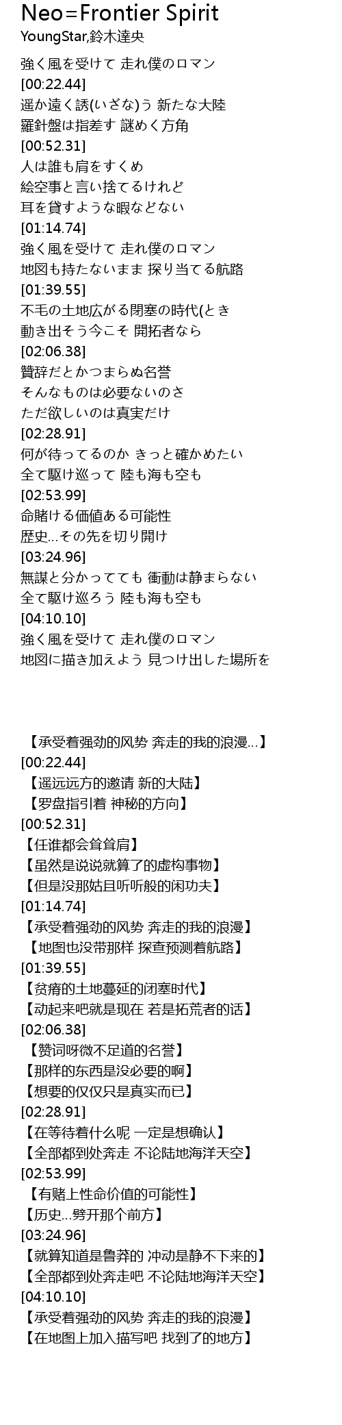 | [01:56.78] | 動き出そう今こそ 開拓者なら |