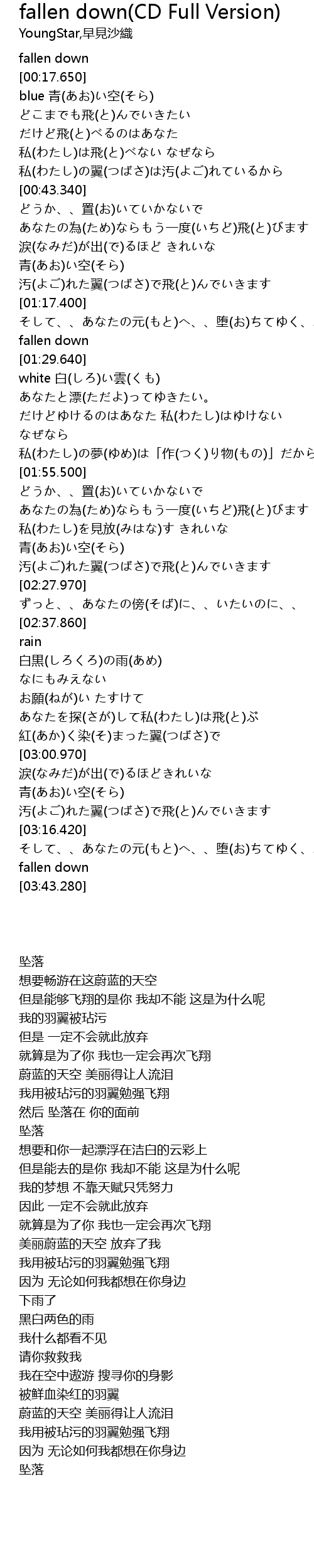 | [03:17.270] | そして、、あなたの元(もと)へ、、堕(お)ちてゆく、、 |