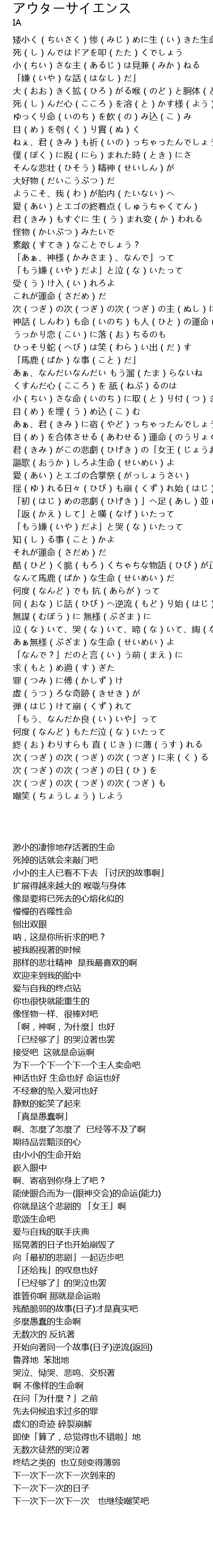 | [01:58.970] | 謳歌(おうか)しろよ生命(せいめい)よ |