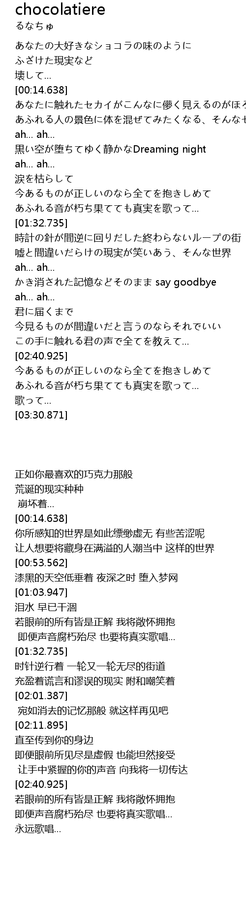 | [00:00.000] | あなたの大好きなショコラの味のように |