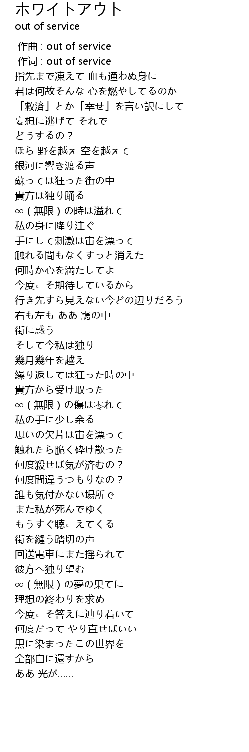 | [02:38.17] | ∞(無限)の傷は零れて |
