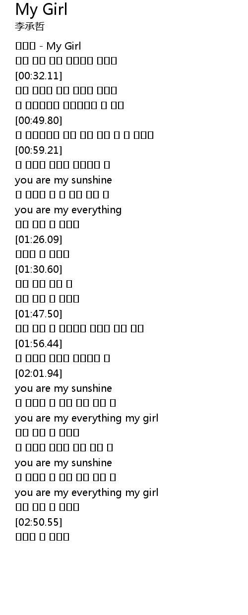 | [00:01.13] | 이승철 - My Girl |