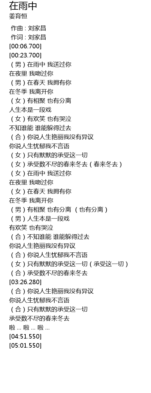 | [01:56.390] | (女)在雨中 我送过你 |