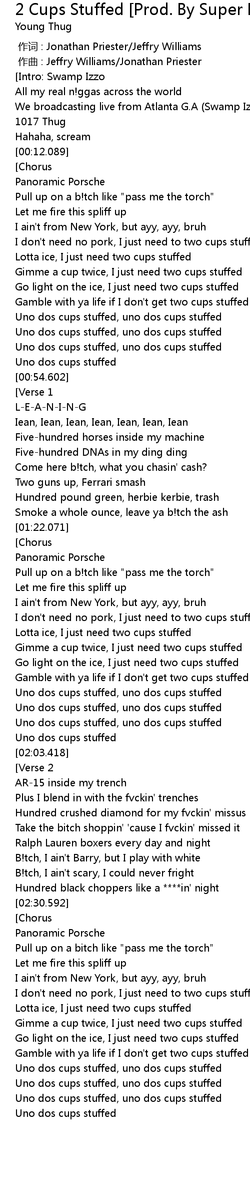 | [02:50.112] | Gimme a cup twice, I just need two cups stuffed |