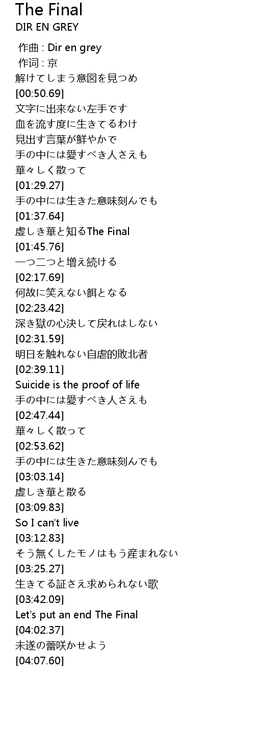 | [00:00.00] | zuò qǔ : Dir en grey |
