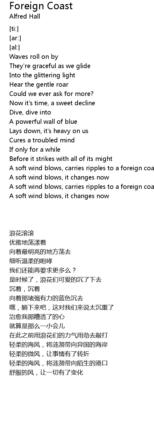 A soft wind blows, carries ripples to a foreign coast |