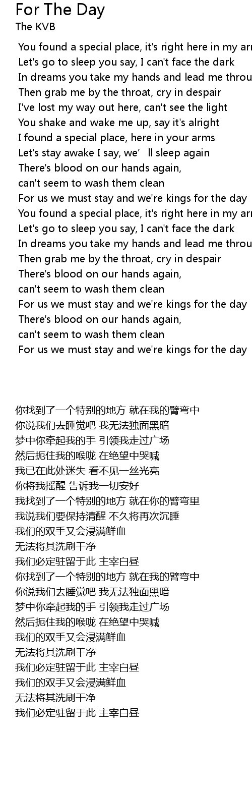 | [02:37.629] | For us we must stay and we're kings for the day |