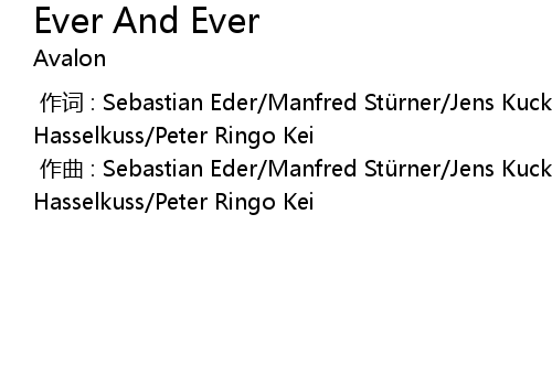| [00:00.000] | 作词 : Sebastian Eder/Manfred Stürner/Jens Kuckelkorn/Petra Hasselkuss/Peter Ringo Kei |