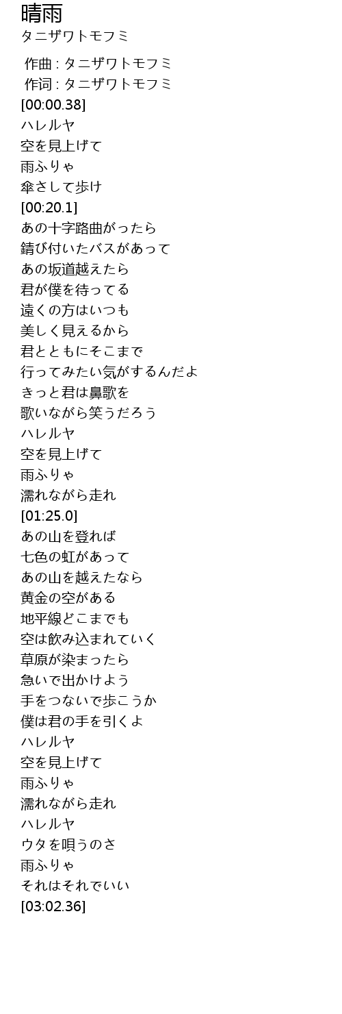 作词 : タニザワトモフミ |