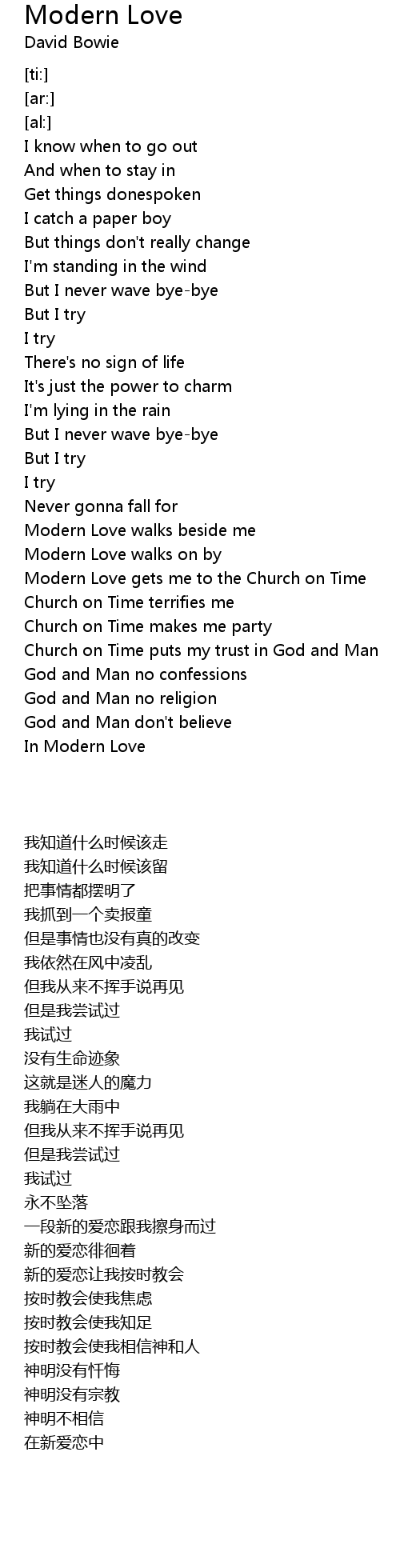 Modern Love walks beside me |