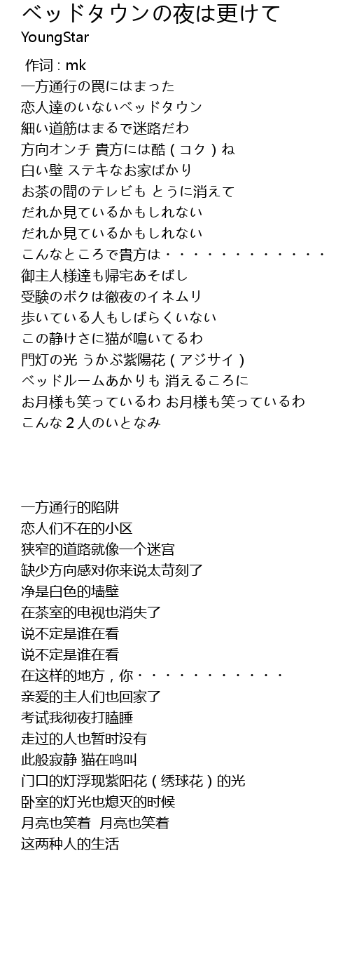 | [00:34.000] | 恋人達のいないベッドタウン |