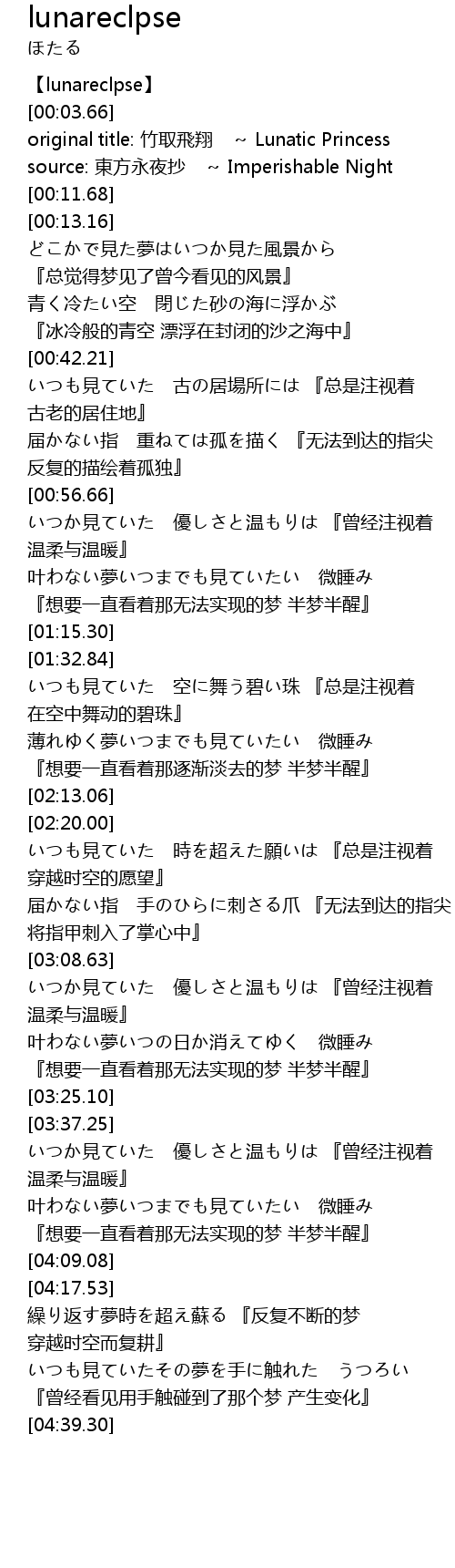 | [00:09.31] | original title: 竹取飛翔 ~ Lunatic Princess |