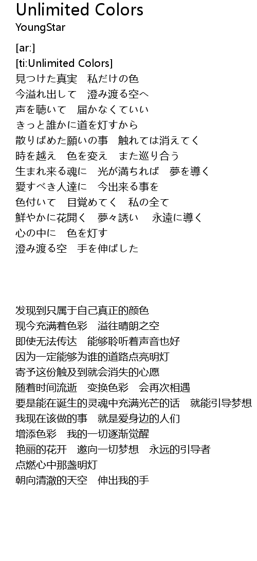 | [00:46.64] | 見つけた真実 私だけの色 |
