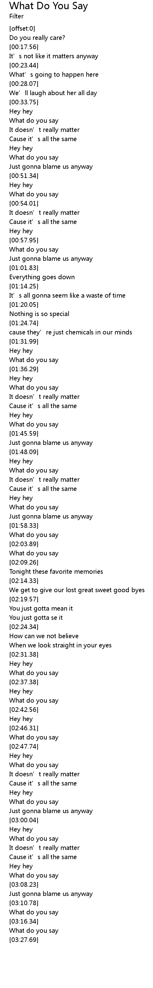 | [03:25.63] | What do you say |