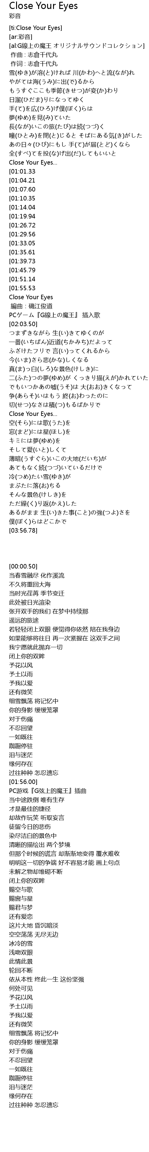 | [01:56.00] | Close Your Eyes |