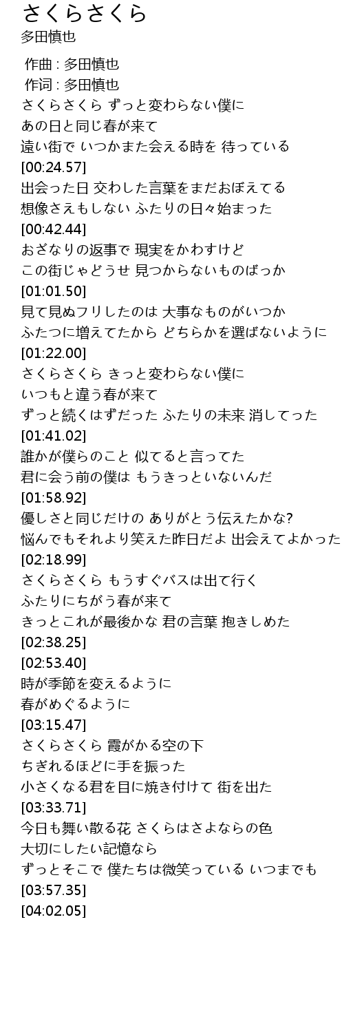 | [00:01.00] | さくらさくら ずっと変わらない僕に |