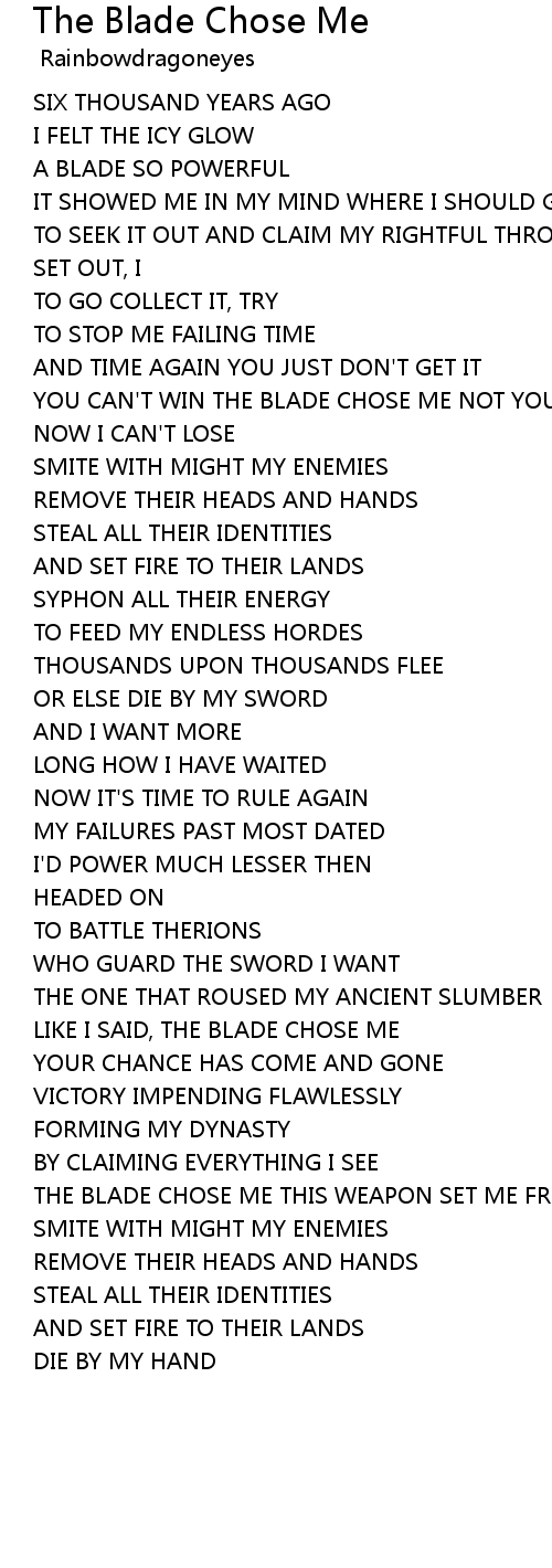 THE BLADE CHOSE ME THIS WEAPON SET ME FREE |