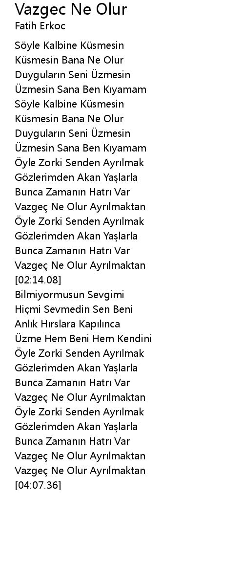 | [03:59.29] | Vazge Ne Olur Ayr lmaktan |
