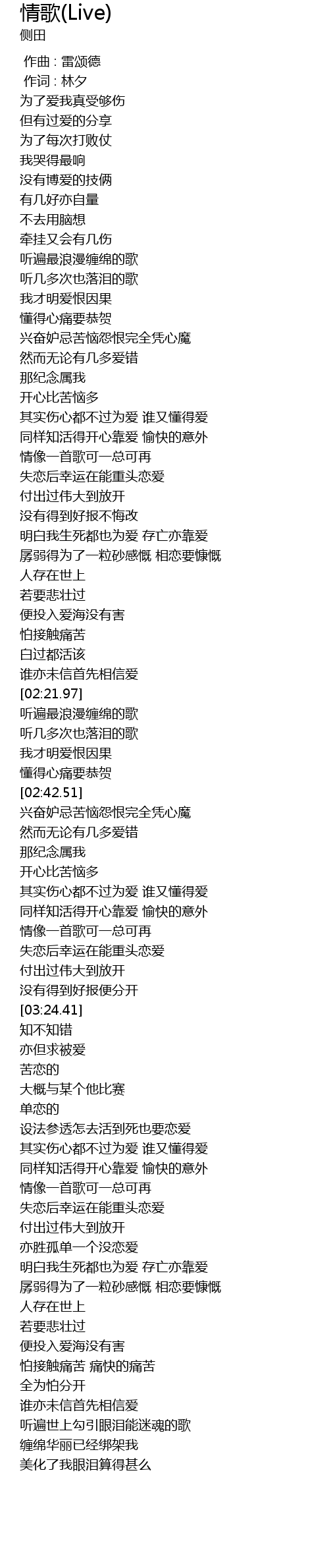 | [03:21.35] | 没有得到好报便分开 |