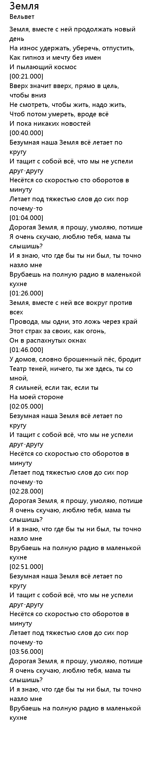 [03:57.000] Дорогая Земля, я прошу, умоляю, потише