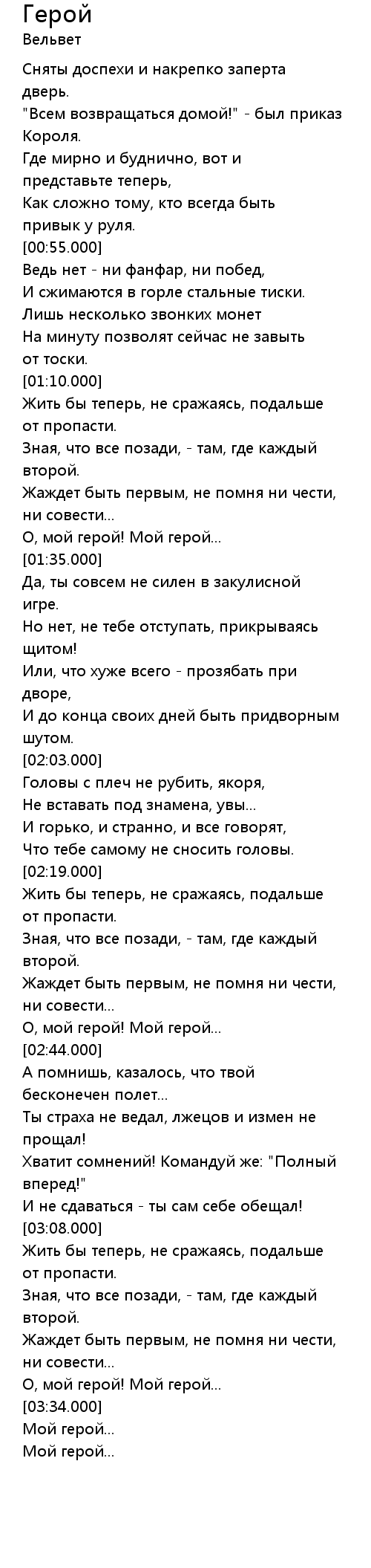 Герой  Lyrics